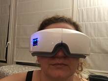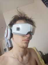I'm happy with the massager, I lie down before bedtime, I relax my eyes. Air pushes, compresses, shakes, it warms well, only such music is recorded in the memory of the narrowed, begins automatic whining when turned on, did not immediately realize that two buttons can adjust its volume, or generally remove, pressed on one with a picture of volume, and it is only on gain :)) Bluetooth has not yet connected, without the need.