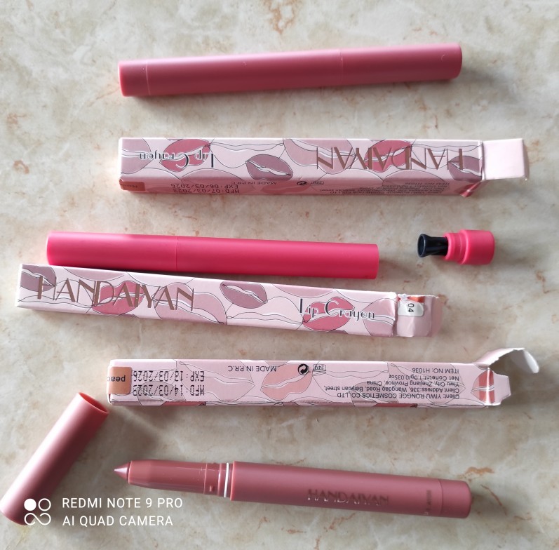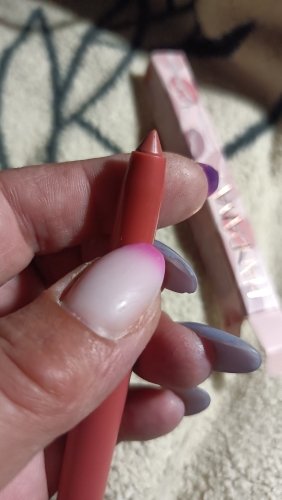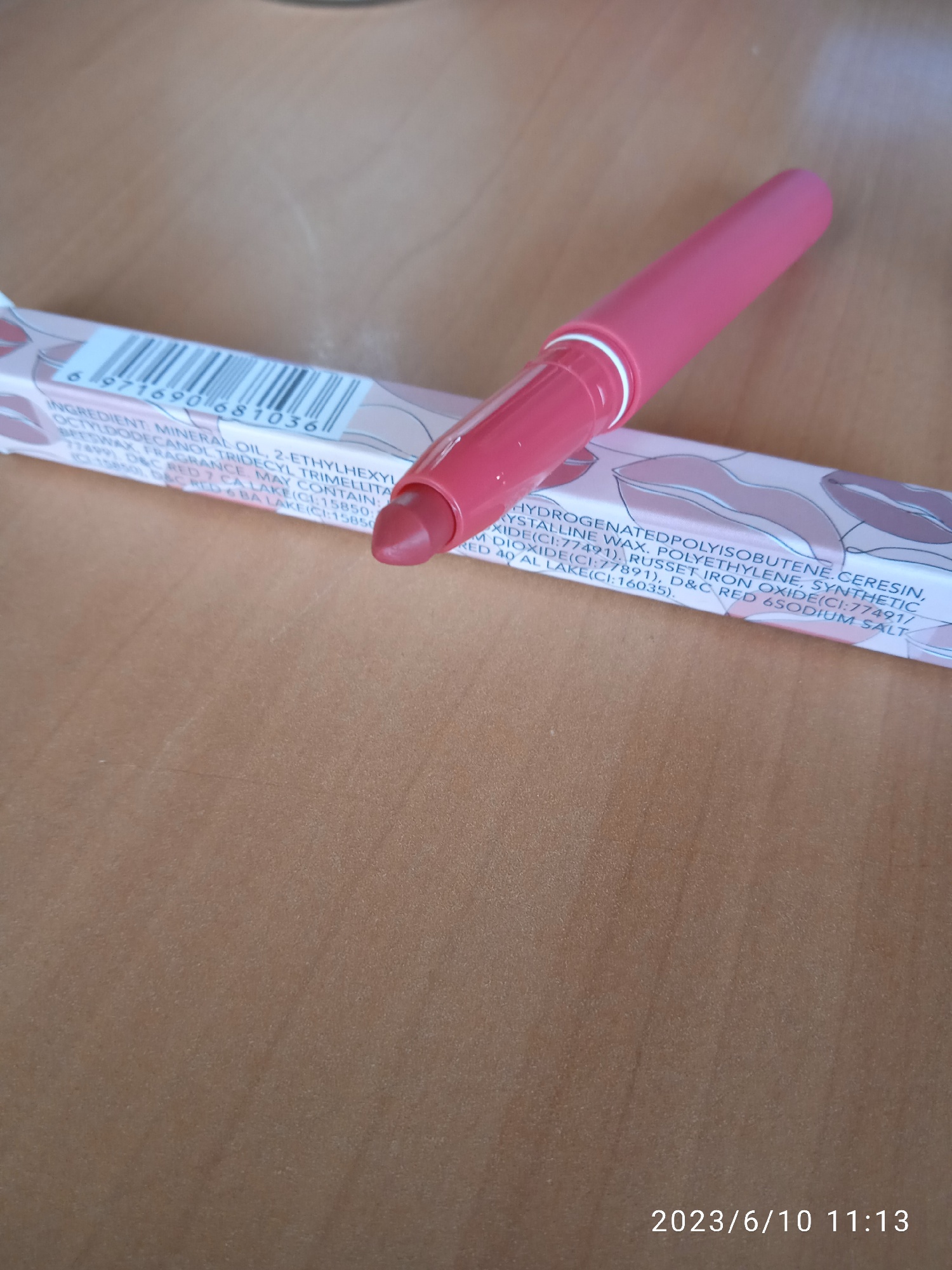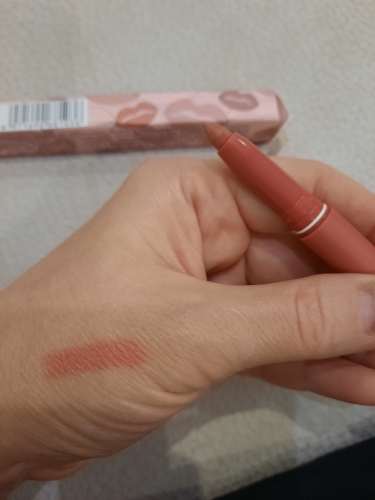As the picture. I didn't even expect the color to match. After application, after a couple of minutes the pencil dries up and there is the effect of "lipstick on the lips, not on it", touching the lips there is no obvious trace. In general, not bad. I recommend the product and the store.