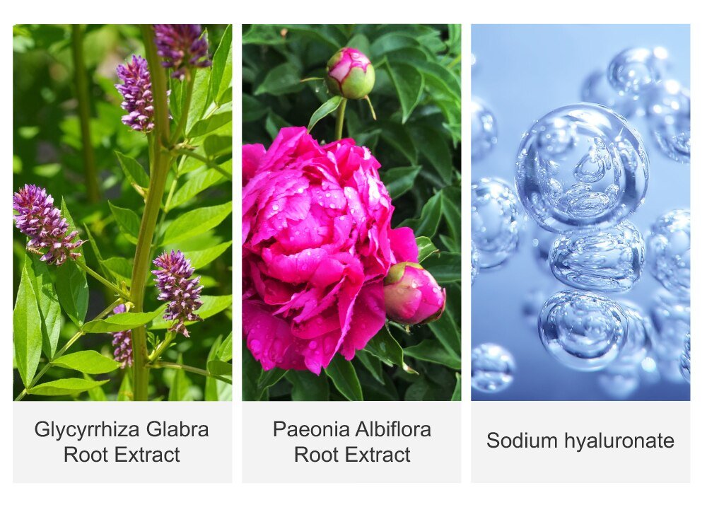 polysaccharides, Butyrospermum Parkii butter, Ascorbic acid(vitamin C), Retinol, Acetyl Hexapeptide-8, Arbutin, Amino- propanol ascorbate phosphate, Glycyrrhiza Glabra Root extract, Deer Bone collagen, Trehalose, Oats (AVENA SATIVA),β-glucan, Citrus Aurantium Dulcis Fruit Extract, Ceramide-1, Paeonia Albiflora Root extract, Vitamin E, Sodium hyaluronate
