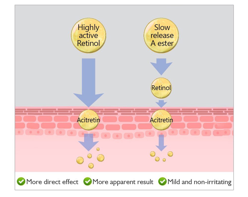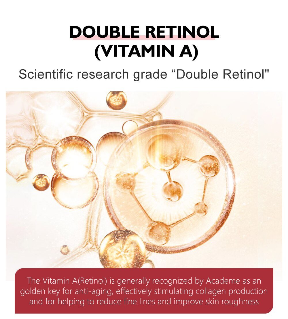 The Vitamin A Retinol is generally recognized by Academe as an golden key for anti-aging, effectively stimulating collagen production and for helping to reduce fine lines and improve skin roughness