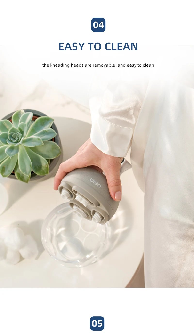 Waterproof & Easy to Clean: Designed for use in wet environments like the shower or bath, with removable kneading heads for effortless cleaning.