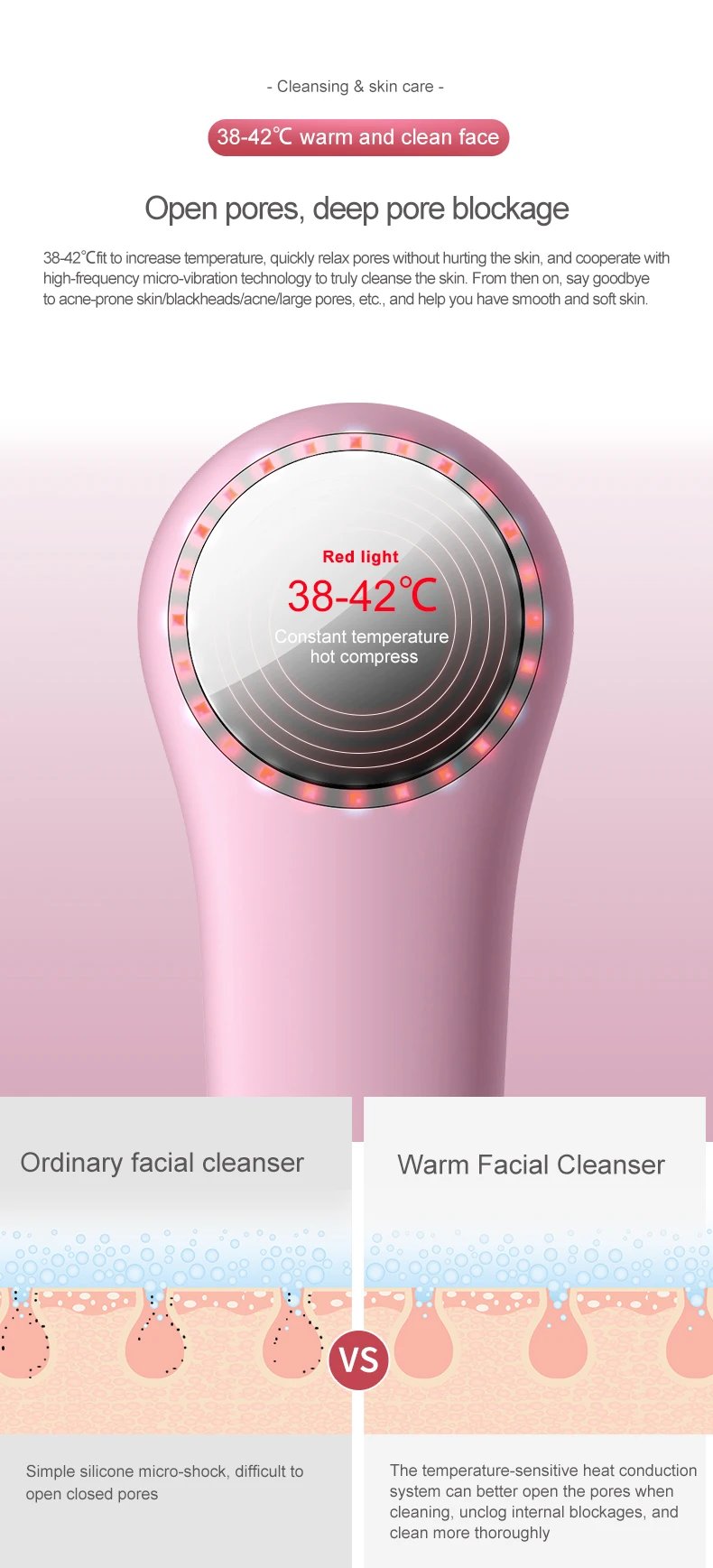 • The sonic vibrations of the Facial Cleansing Brush penetrate deep into your pores, removing impurities that manual washing often leaves behind. This results in a cleaner, clearer complexion.