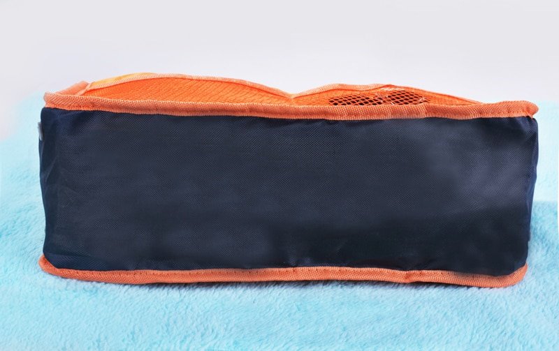 It looks good product, the zippers open and close without difficulty. It is large and has many pockets, as well as two small handles to be able to grip the bag. Comfortable to carry in suitcase or large bags. 15 days to arrive.