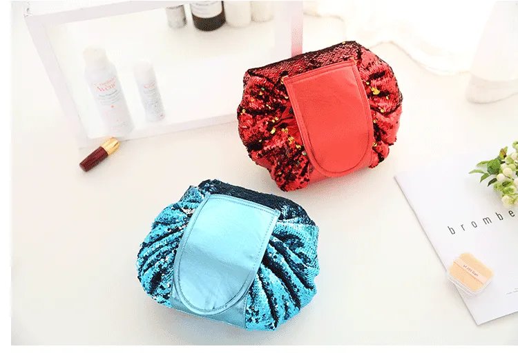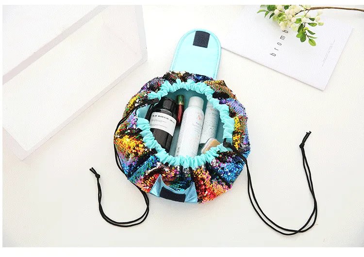Do you have difficulty wrapping all your cosmetics and skincare products in a sachet for a long journey? Do you find the patterns of ordinary toiletry bags uncreative and boring? Then you absolutely need this Mermaid Sequin Cosmetic Bag with Drawstring Closure! Portable size with huge capacity. Beautiful look and very easy to use. A must-have for every lady and every girl!