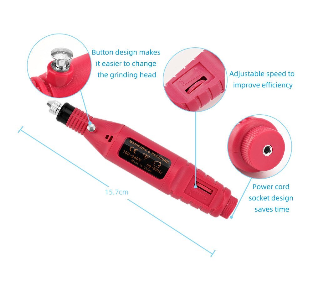 Electric Manicure Machine: Easy to use in any position, easy to replace bits/ files without any tools, handy to operate. Speed adjustable, controlled by a shaft button, make it easier and safer to polish your nails. Features an excellent selection of sanding bits, effectively treat both delicate areas and rough callus.