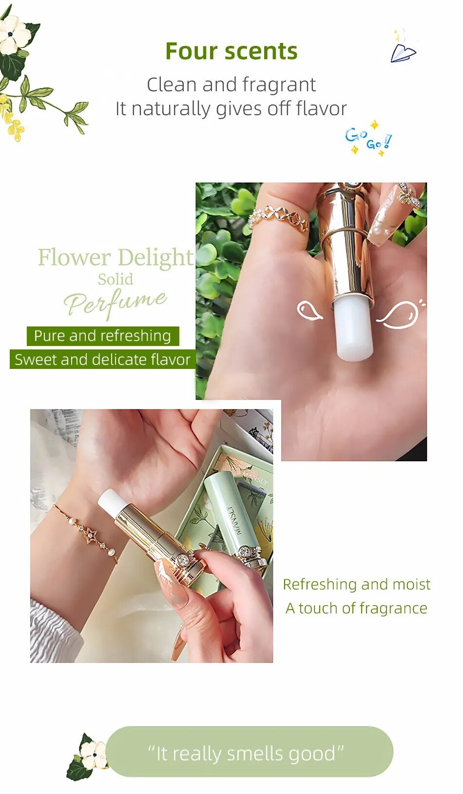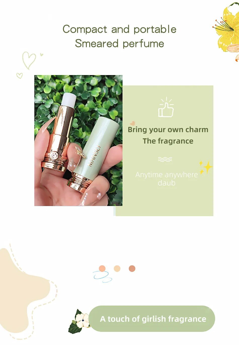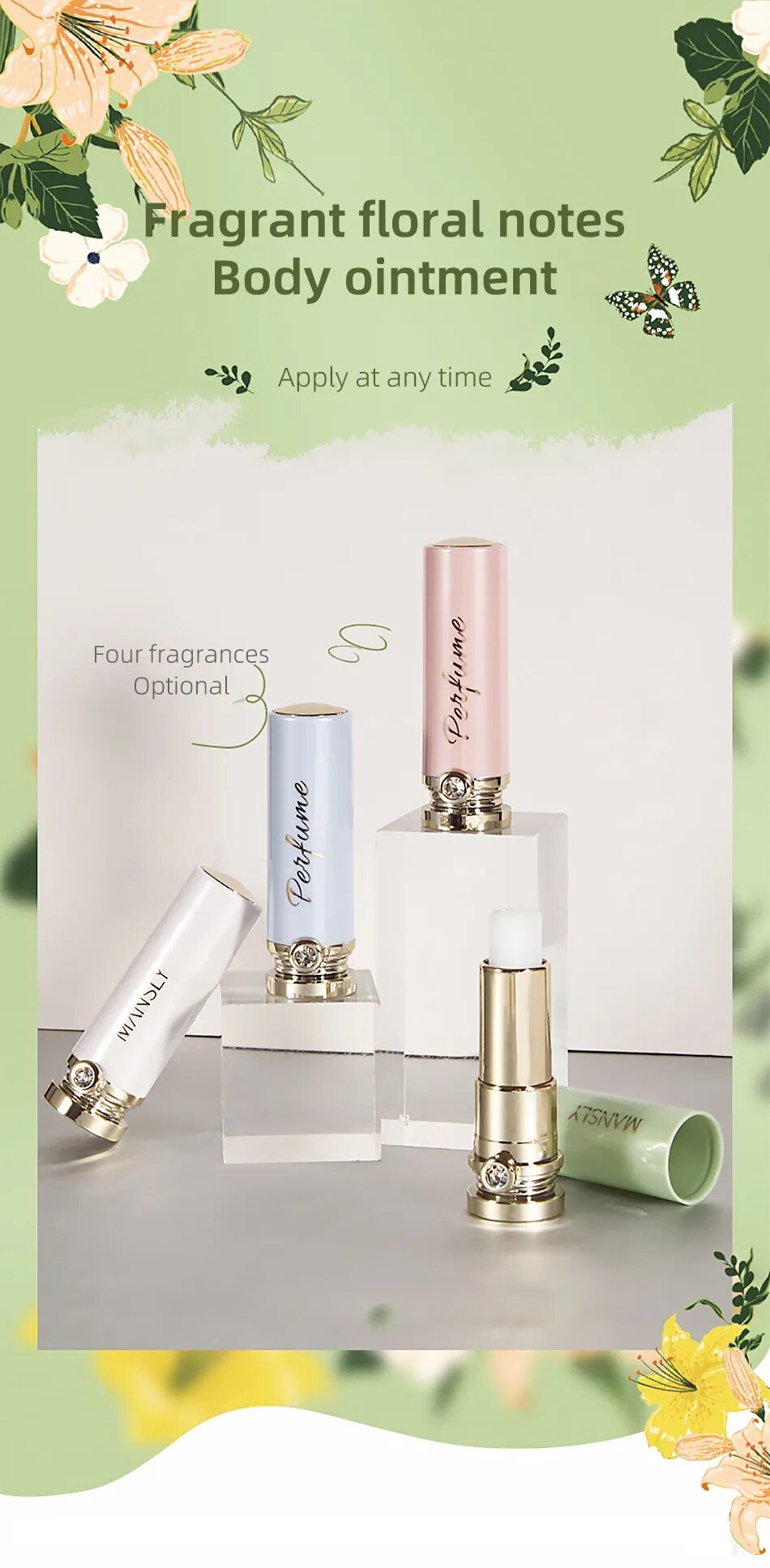 3. **Convenient Solid Form**: Unlike traditional liquid perfumes, our Solid Perfume Lip Balm comes in a compact, travel-friendly solid form. This makes it incredibly convenient to carry in your purse or pocket, ensuring you can refresh your fragrance and pamper your lips on the go.