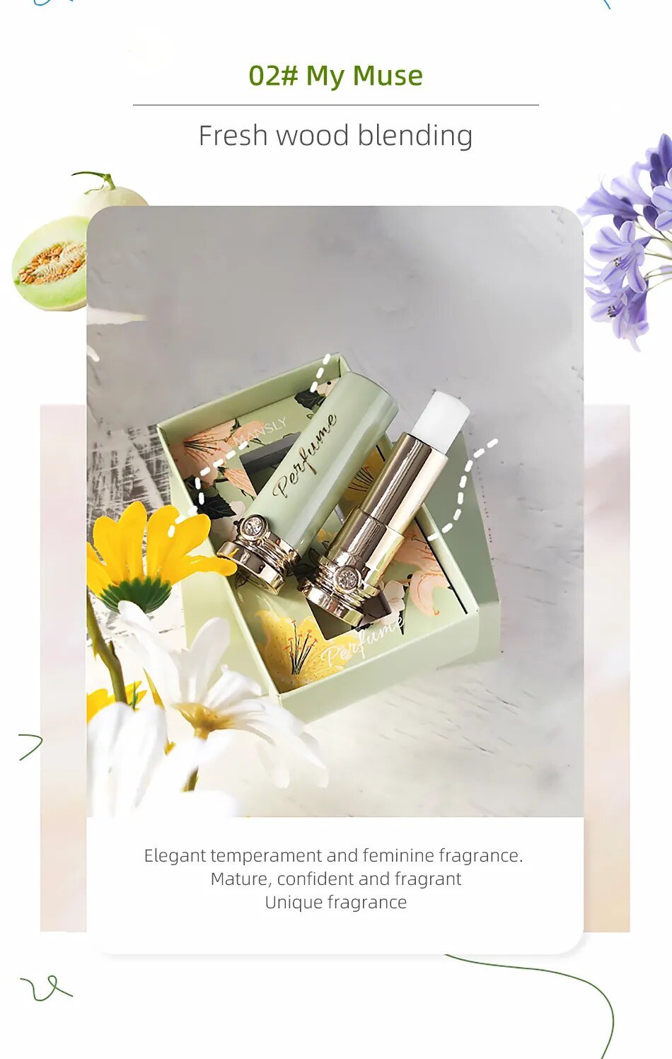4. **Elegance and Portability**: Housed in an elegantly designed, eco-friendly container, our Solid Perfume Lip Balm adds a touch of sophistication to your beauty collection. The compact size and sturdy packaging make it the perfect companion for your daily adventures, from the boardroom to a night out on the town.